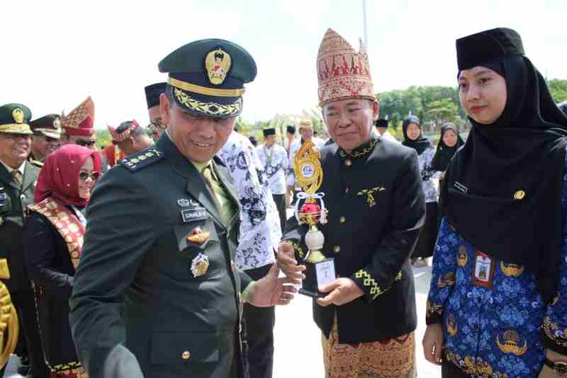 Kasrem 043/Gatam, Kolonel Inf Sumarlin Marzuki, S.E., menyampaikan apresiasi atas pelaksanaan upacara gabungan tersebut. Menurutnya, momentum ini mencerminkan soliditas pemerintah daerah, TNI, Polri, para pendidik, dan ASN dalam menjaga stabilitas wilayah dan mendorong pembangunan.