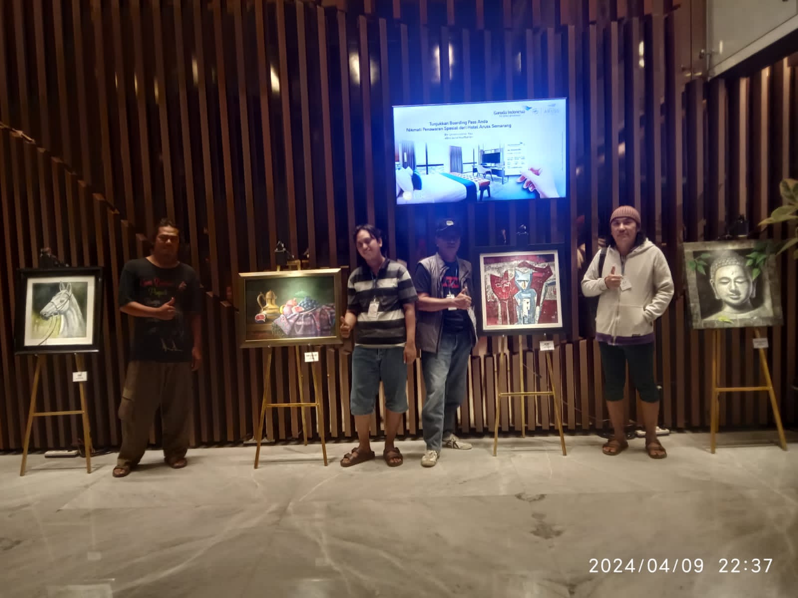 Helat gelar karya dari para punggawa Kelompok 5 Rupa; plus Hendriyanto ini berlangsung dari 10 April hingga 25 Apiril 2024. Genera Manager Hotel Aruss A Sendek P mengatakan, meyambut baik kerjasama gelaran taja karya Kelompok 5 Rupa ini pas momennya dengan liburan hari raya Idul Fitri 2024.