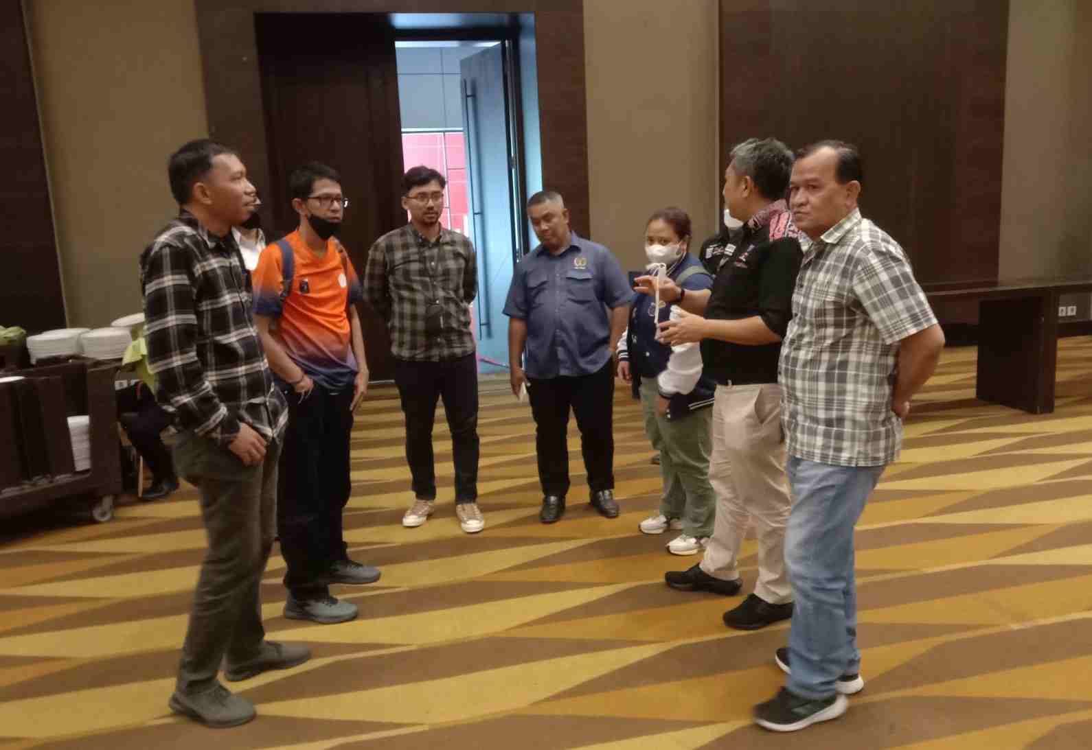 MEDAN – Untuk memastikan dan memantapkan pelaksanaan Seminar Olahraga dan Rakernas Seksi Wartawan Olahraga (Siwo) PWI sesuai standar nasional, Staf Kemenpora RI Syarif Syaifulloh meninjau langsung venuenya di Hotel Santika Dyandra Medan, Jumat (20/1) sore.