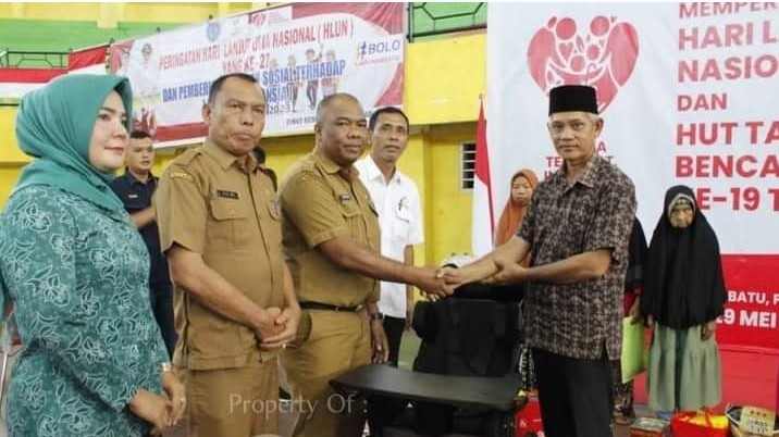 Acara dilanjutkan dengan penyerahan bantuan kursi roda secara simbolis oleh Bupati Labuhanbatu diwakili Plt Kepala Dinas Sosial Syahrizal Hasibuan kepada lansia asal Tanjung Medan.