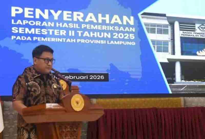 Penegasan tersebut disampaikan Giri Akbar saat menghadiri sekaligus memberikan sambutan dalam acara Penyerahan LHP Semester II Tahun 2025 oleh BPK RI Perwakilan Provinsi Lampung di Kantor BPK RI Perwakilan Provinsi Lampung, Selasa (11/2/2026).