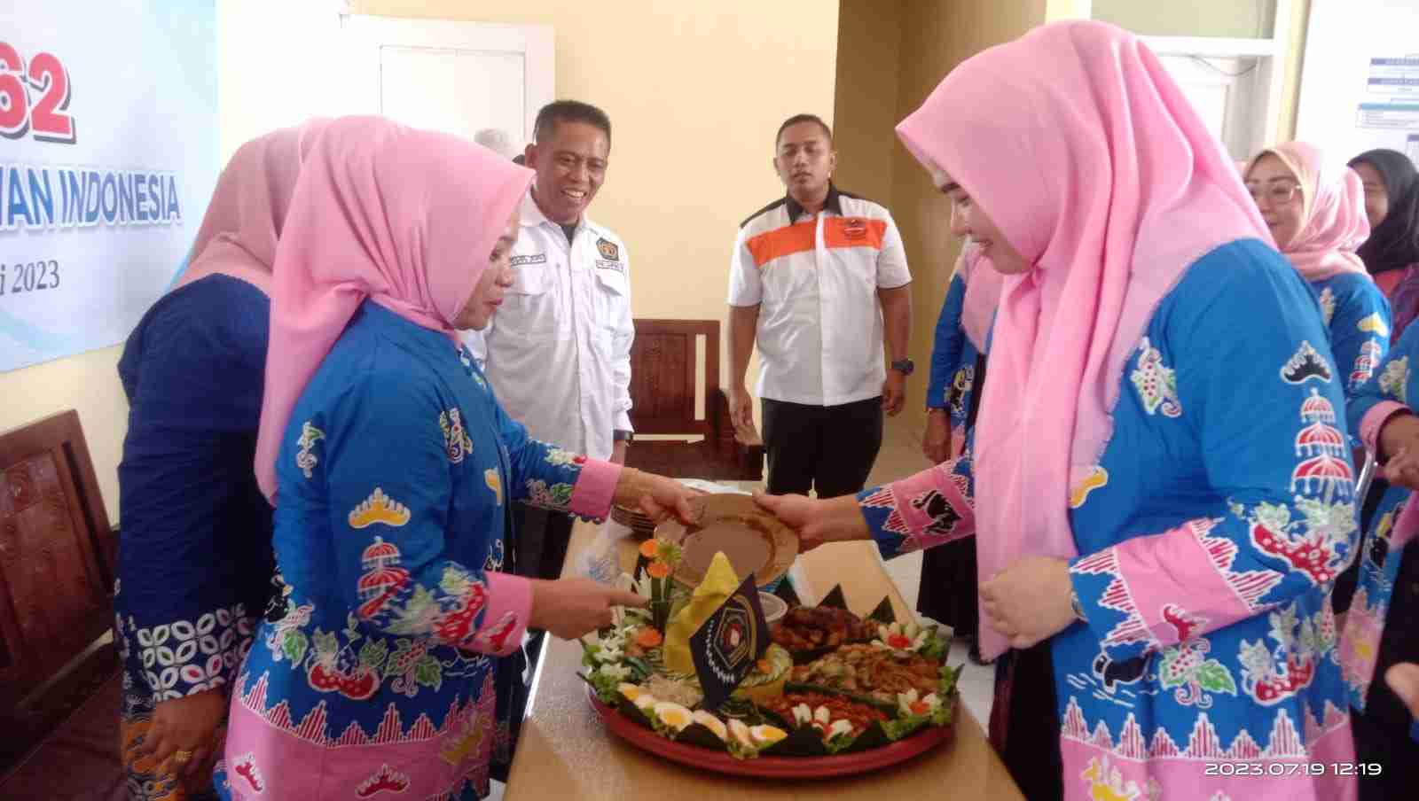 Pemotongan tumpeng oleh ketua IKWI Lampung Timur Desi Maryana Muklis di dampingi sekertaris Eti Lusiana Khaerudin,bendahara Siti Amelia Fahrudin, dewan penasehat serta jajaran pengurus dan anggota yang secara simbolis diberikan kepada ketua PWI Lamtim Muklis ,Sekertaris Khairudin, Bendahara Arif Fahrudin PWI serta Dewan Penasehat H.Bunyamin.