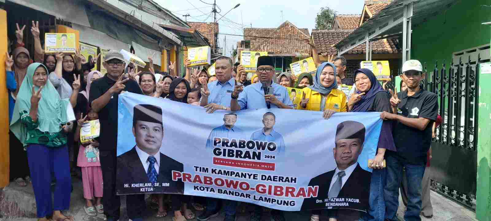 Bandar Lampung – TIM Pemenangan Prabowo – Gibran yang tergabung dalam Koalisi Indonesia Maju Kota Bandar Lampung lewat Ketuanya H. Kherlani dan Bendahara H. Azwar Yacub mengajak warga masyarakat Kelurahan Kebun Kelapa – Kecamatan Teluk Betung Selatan – Bandar Lampung untuk Pemilu tahun 2024 mendatang agar mencoblos Pasangan Capres dan Cawapres Prabowo – Gibran pada Pilpres tahun 2024.