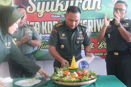BANDAR LAMPUNG — Komando Distrik Militer (Kodim) 0410/Kota Bandar Lampung menggelar acara syukuran dalam rangka memperingati Hari Ulang Tahun ke-79 Kodam II/Sriwijaya, bertempat di Markas Kodim setempat, pada Selasa (7/1/2025)