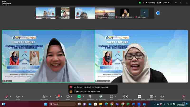 Semarang – Universitas Negeri Semarang (UNNES) kembali menunjukan dedikasinya di dunia pendidikan inklusi di jagat pendidikan anak usia dini (PAUD). Program itu dikemas dalam acara Webinar Guest Lecture yang berlangsung, Selasa (17/06/2025) dari Pukul 08.00-10.00 WIB Indonesia atau Pukul 09.00 -11.00. MYT waktu Malaysia. Kegiatan ini selain diikuti Tim Peneliti juga para mahasiswa dari Malaysia – Indonesia, kepala sekolah dan guru-guru PAUD dari kedua negara.