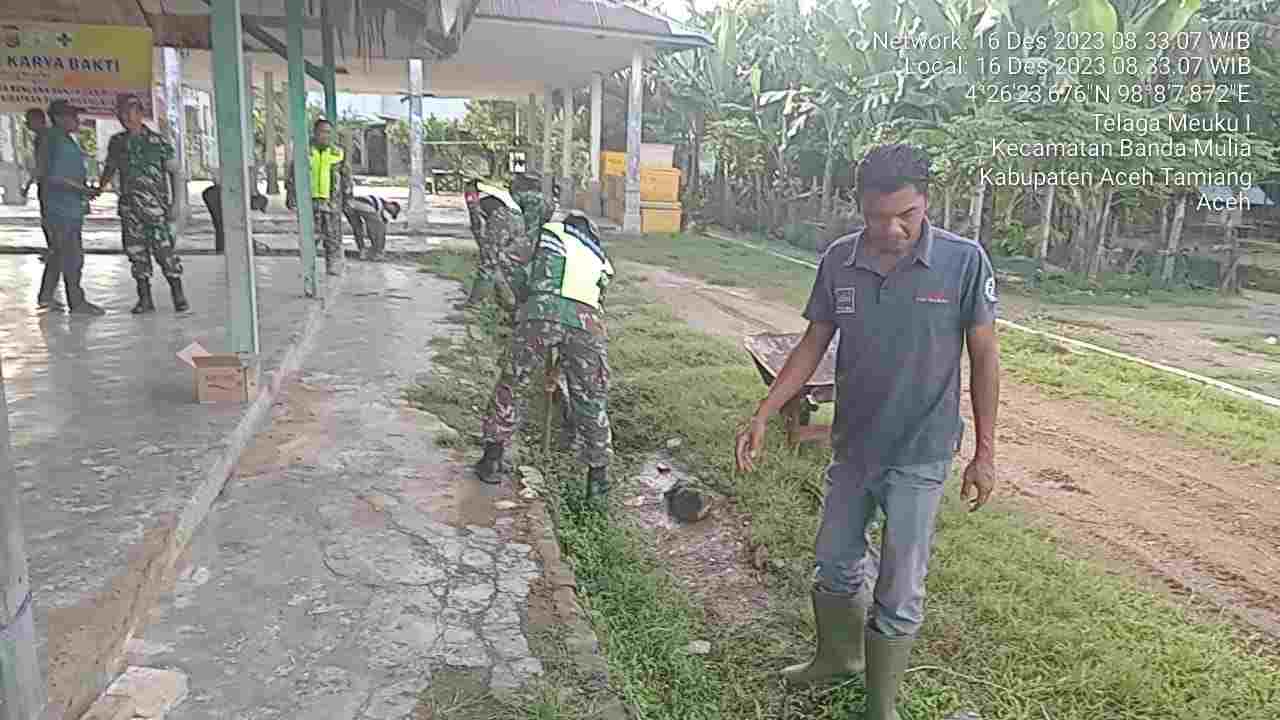 Pelaksanaan karya bakti Pada 16/ Desember/ 2023,Koramil 09/Banda mulia bersama Forkopimcam Banda Mulia melaksanakan kegiatan Karya Bhakti mengantisipasi banjir dan munculnya wabah penyakit yang diakibatkan berkembangnya nyamuk dalam rangka memperingati Hari Juang TNI AD ke 78 di Desa Telaga Meku Sa Kecamatan Banda Mulia Kabupaten Aceh Tamiang.