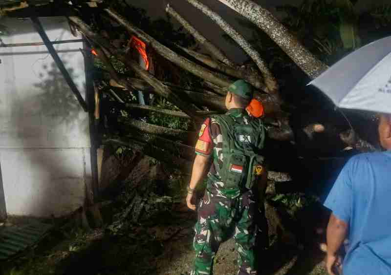 Bandar Lampung – Musibah datang tiba-tiba bagi Damin (60), warga Jl. P. Antasari Gang H. Thoyib, Kelurahan Tanjung Baru, Kecamatan Kedamaian. Akibat hujan deras dan angin kencang yang melanda wilayah tersebut pada Selasa (10/03/2026) sore, sebuah pohon besar tumbang dan ambruk menimpa atap kamar depan serta ruang tengah rumahnya. Namun, di balik musibah itu, kehadiran aparat kewilayahan, khususnya Babinsa, menjadi cahaya di tengah kesulitan.