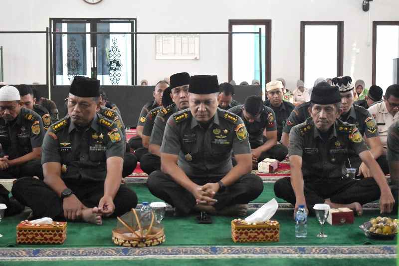 Lampung – Dalam rangka meningkatkan keimanan dan ketaqwaan kepada Tuhan Yang Maha Esa, segenap prajurit, PNS dan Persit Korem 043/Gatam yang beragama islam mengikuti peringatan Maulid Nabi Muhammad SAW 1446 H/2024 M, yang dilaksanakan di Masjid Al-Ikhlas Makorem 043/Gatam Jl. Teuku Umar Penengahan Bandar Lampung, Rabu (18/9/2024).