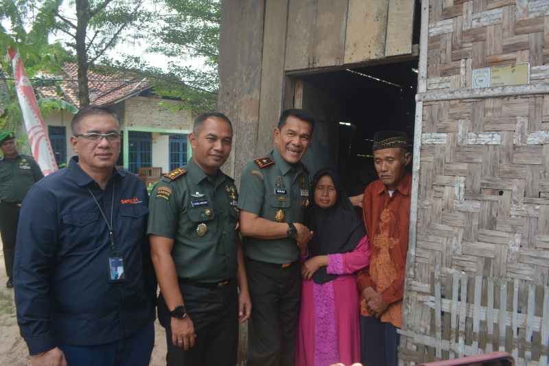 Selanjutnya Danrem 043/Gatam beserta rombongan melaksanakan peletakan batu pertama bedah Rumah Tidak Layak Huni (RTLH) milik Bapak Supari yang berada di Dusun Simpur RT. 003 RW. 007 Desa Kedaton Kecamatan Kalianda Kabupaten Lampung Selatan.