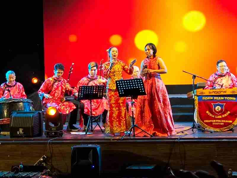 Di antara ragam kesenian yang tampil malam itu, Lamkwan Boen Hian Tong menyentuh penonton dengan kehalusan. Tidak ada ledakan cahaya, tidak ada dramatika panggung. Yang ada hanyalah kesunyian yang diisi musik—dan justru dalam kesederhanaan itulah kesakralan muncul.