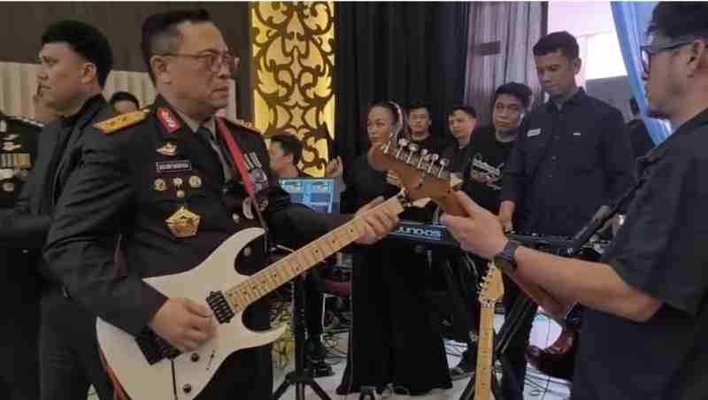 Lampung – Lengkingan gitar Irjen Pol Helmy Santika menjadi pembuka suasana hangat dalam peringatan Hari Bhayangkara ke-79 yang digelar di Mapolda Lampung, Selasa (1/7/2025).