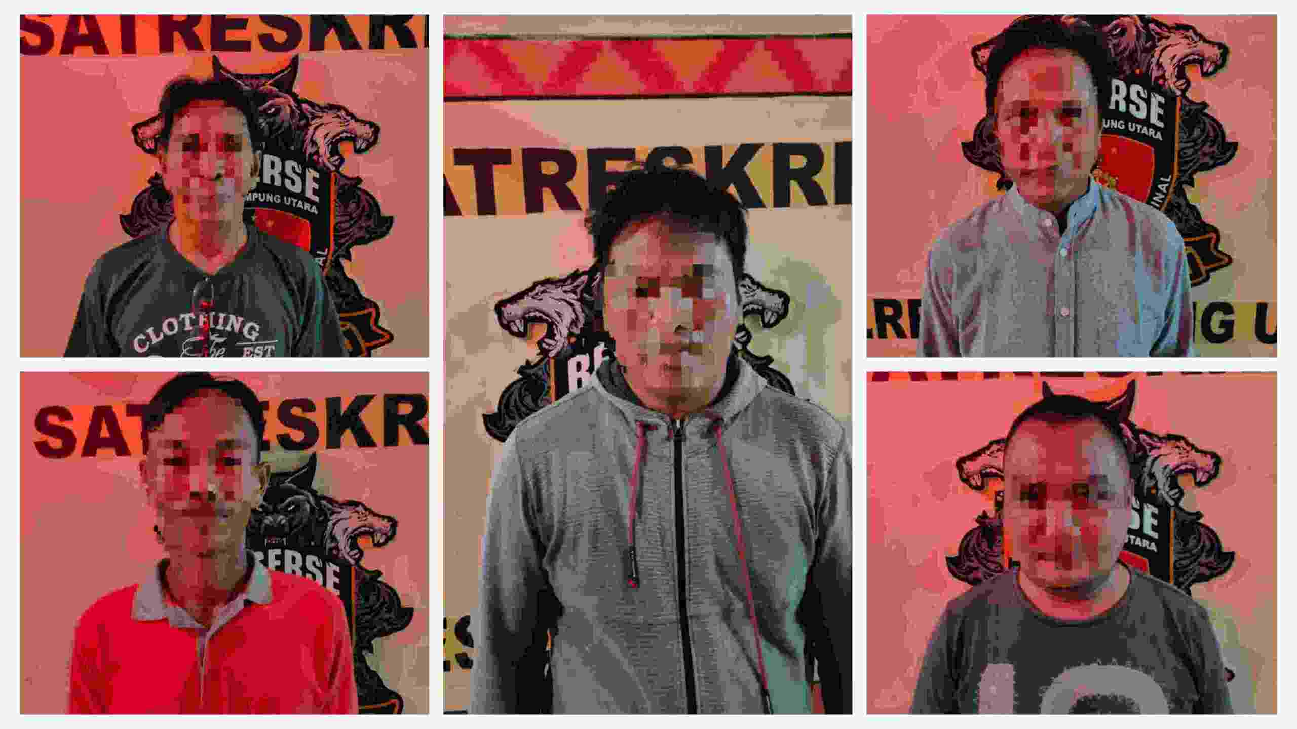Ke lima pelaku yakni PER (39) warga Desa Tata Karya, MHD (39) warga Desa Pakuon Agung Kec Muara Sungkai, RUS (47) Desa Negeri Ratu, JND (38) Pakuon Agung dan BHD (34). warga Desa Tata Karya.