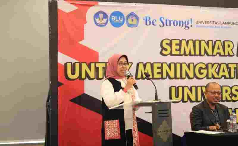 Rektor Unila menyampaikan apresiasi atas terselenggaranya seminar ini sebagai langkah konkret dalam mendukung kesehatan mental para staf.