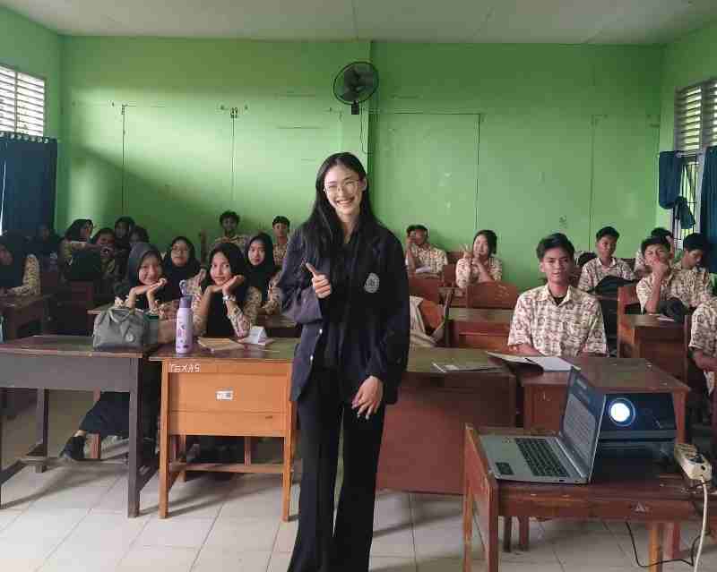 Salah satu pemateri, Marcheline Aurely, mahasiswa Bisnis Digital yang juga Winner Muli Provinsi Lampung 2025, menyampaikan materi bertajuk “Content Marketing: Strategi & Implementasi”. Dalam paparannya, Marcheline menekankan bahwa konten tidak sekadar soal estetika, tetapi harus memiliki tujuan dan pesan yang kuat. “Konten yang baik bukan hanya yang viral, tetapi yang mampu membangun kepercayaan audiens dan memberikan nilai bagi brand atau bisnis,” ujar Marcheline di hadapan para siswa.