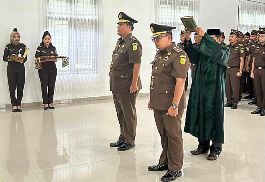 Prosesi pelantikan dihadiri para pejabat Kejari Sergai, termasuk Kasi, Kasubbag, dan ASN, digelar di aula Adhyaksa Kejari Sergai.