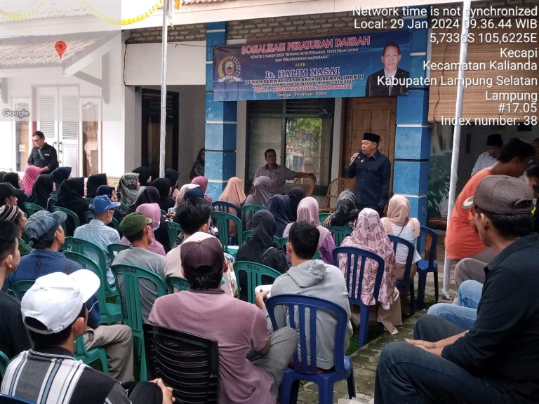 Kegiatan sosper yang dipusatkan di Desa Kecapi Kecamatan Rajabasa Lampung Selatan itu dihadiri sejumlah perangkat Desa serta tokoh masyarakat, tokoh pemuda serta tamu undangan, Senin, (29/1/2024).