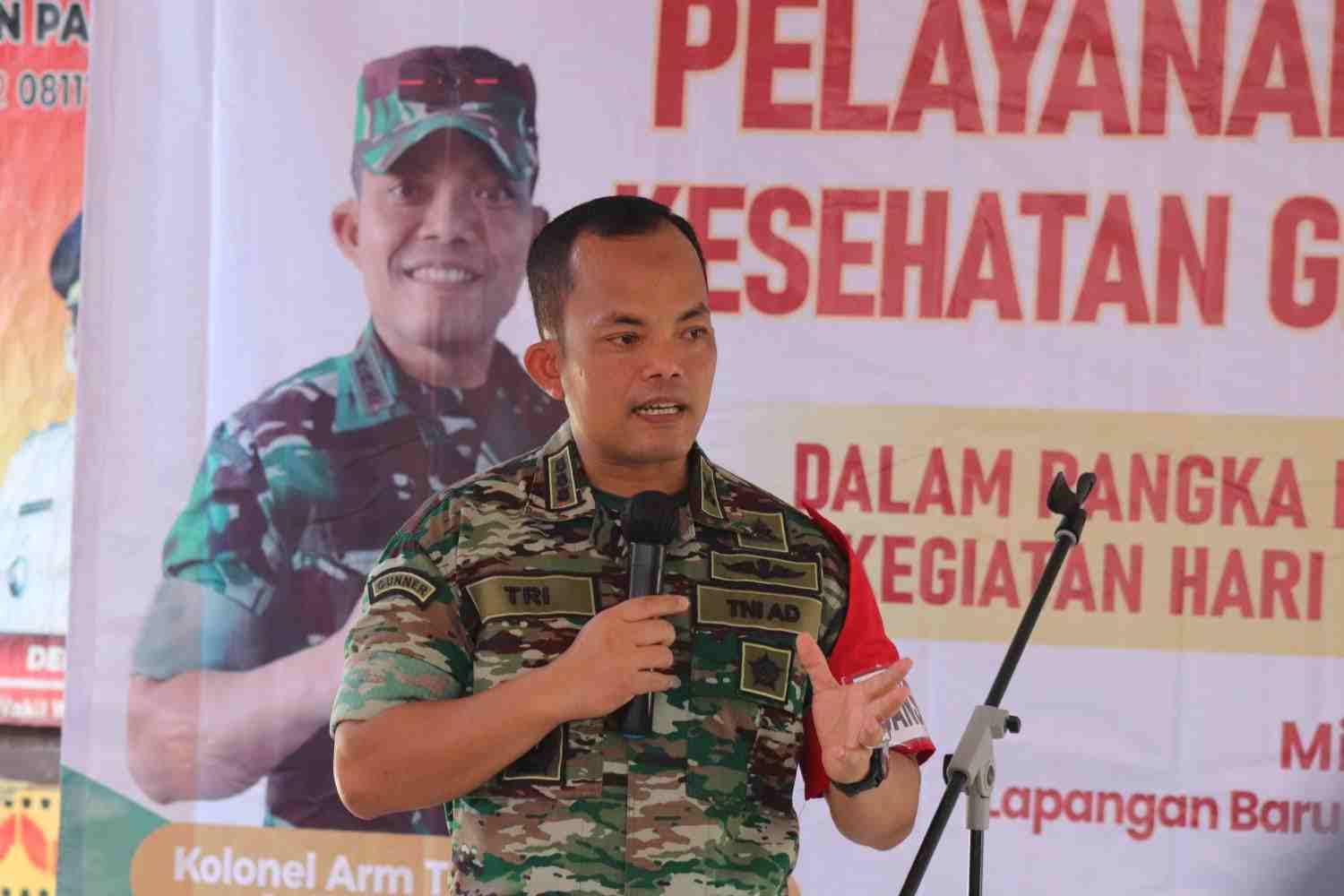 Dandim 0410/KBL Kolonel Arm Tri Arto Subagio M.Int.Rel.,MMDS dalam sambutannya mengatakan, disamping memberikan pelayanan kesehatan gratis kegiatan ini sekaligus melaksanakan donor darah.