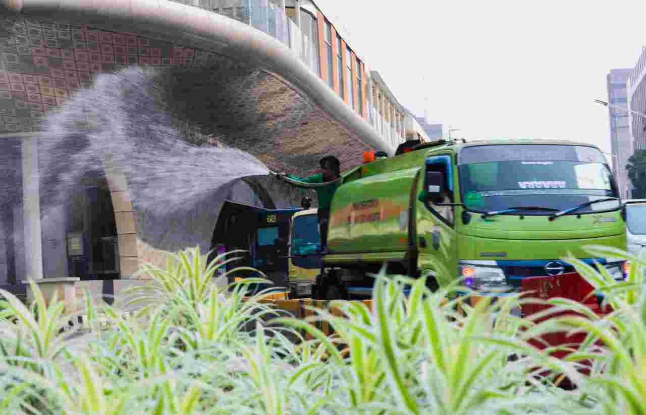 Selain penyiraman tanaman, dilakukan juga penyiraman badan jalan dan trotoar untuk membantu menjaga suhu kota tetap sejuk, agar para pengguna kendaraan umum tetap nyaman saat berada di halte maupun area publik. Hal ini juga dilakukan untuk menyambut KTT ASEAN yang akan digelar pada September mendatang.