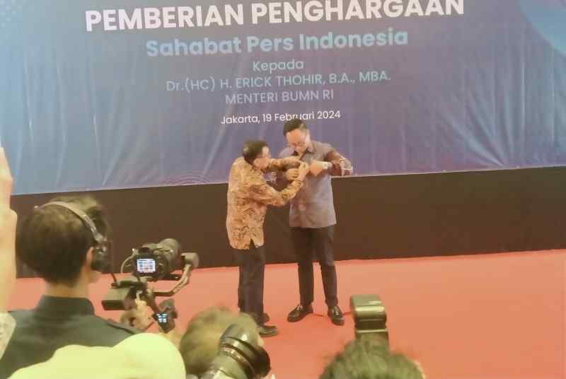 JAKARTA – Menteri BUMN Erick Thohir menerima pin emas dari Persatuan Wartawan Indonesia (PWI) Pusat. Erick dinilai mendukung penuh program Sekolah Jurnalistik Indonesia atau SJI 2024.