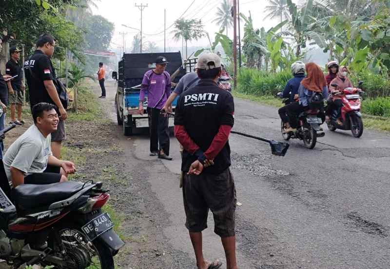 Dedi warga dusun Penengahan mewakili warga lainnya mengucapkan terimakasih kepada PSMTI Kabupaten Pesawaran yang sudah peduli terhadap keselamatan warga dan penguna jalan.