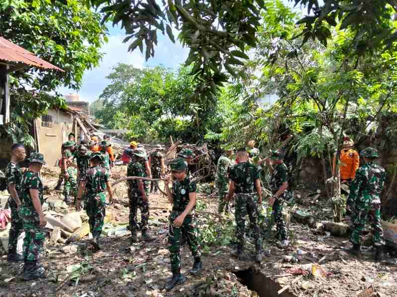 Banjir besar yang terjadi pada Selasa (15/4) lalu mengakibatkan tembok penahan air roboh, rumah-rumah warga dipenuhi material, dan aliran sungai tersumbat sampah serta reruntuhan. Merespon situasi tersebut, Pelda Sulindra tidak hanya melapor, tetapi langsung bergerak menginisiasi dan memonitoring aksi pembersihan bersama lintas unsur.