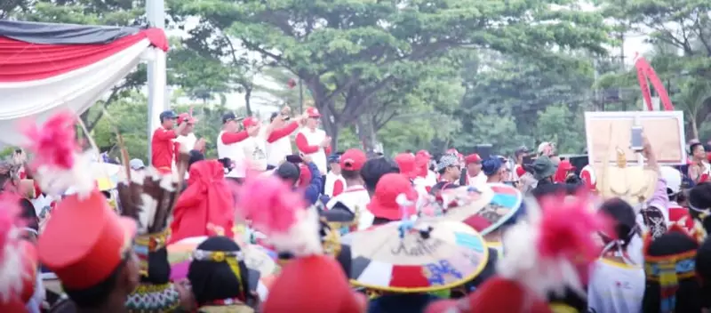 Ribuan kontingen Jumbara terlihat mengenakan atribut dan kostum tradisional, serta menampilkan tarian, musik, dan seni pertunjukan khas dari daerah masing-masing.