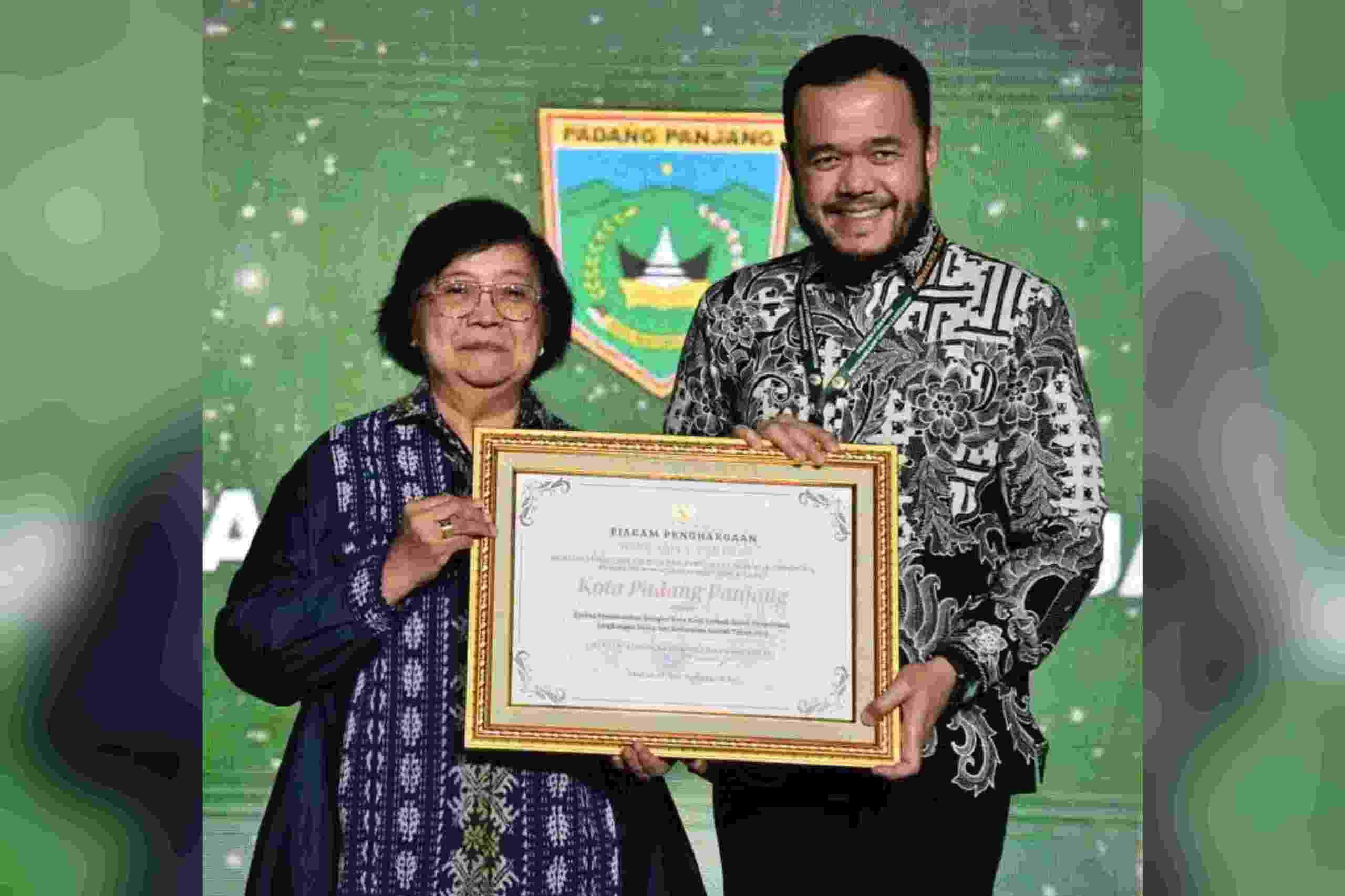 Lalu pada Selasa (29/8), Penghargaan Green Leadership Nirwasita Tantra dari Kementerian Lingkungan Hidup dan Kehutanan (KLHK) diraih Padang Panjang untuk dua kategori sekaligus. Kategori Kepala Daerah dan Pemerintah Daerah (Kota Kecil).