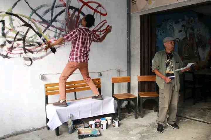Dengan iringan lagu Not U yang ditembangkan Alan Walker dan puisi yang didedahkan Christian Heru Cahyo Saputro dengan taetrikal perupa Giovanni meneruskan goresan Yoyok.