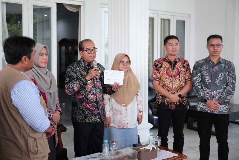 BANDARLAMPUNG – Petugas Pemutakhiran Data Pemilih (Pantarlih) dari Kelurahan Sumur Batu, Bandarlampung melakukan pencocokan dan penelitian (coklit) data pemilih Pilkada 2024 kepada Pj. Gubernur Lampung Samsudin dan Ibu Maidawati Retnoningsih Samsudin, di Mahan Agung, Rumah Dinas Gubernur Lampung, Jumat (19/7/2024) sore.