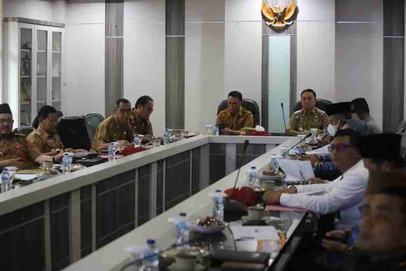 Sumaterapost.co, Lambar – Bupati Lampung Barat Parosil Mabsus menggelar Rapat Koordinasi Forum Komunikasi Pimpinan Daerah (Forkopimda) bersama kepala Organisasi Perangkat Daerah (OPD) membahas monitoring ketersediaan bahan pokok, pengawasan hewan qurban, serta pengamanan pelaksanaan Hari Raya Idul Adha 1446 Hijriah di Ruang Rapat Pesagi. Senin 02/06/2025.