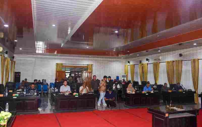 Acara berlangsung di ruang sidang DPRD dengan dihadiri Pelaksana Tugas (Plt) Sekretaris Daerah Kota Tebing Tinggi, H. Kamlan Mursyid, S.H., M.M., CGCAE, para kepala OPD, camat, lurah, anggota DPRD, serta perwakilan pengadilan negeri.