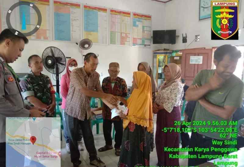 PESISIR BARAT – Pekon Way Sindi Hanuan, Kecamatan Karya Penggawa telah menyalurkan Bantuan Langsung Tunai Dana Desa (BLT-DD) tahap pertama kepada 22 Keluarga Penerima Manfaat (KPM) Jumat 26 April 2024.