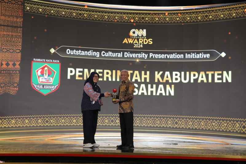 Sumaterapost.co | Asahan – Pemerintah Kabupaten Asahan (Pemkab) mendapatkan penghargaan Outstanding Cultural Diversity Preservation Initiative Tahun 2024. Penghargaan ini diberikan oleh CNN Indonesia kepada Bupati Asahan pada acara CNN Indonesia Award 2024 di Grand Ballroom Lt 2 JW Marriott International Hotel Medan, Jumat (09/08/2024) malam.