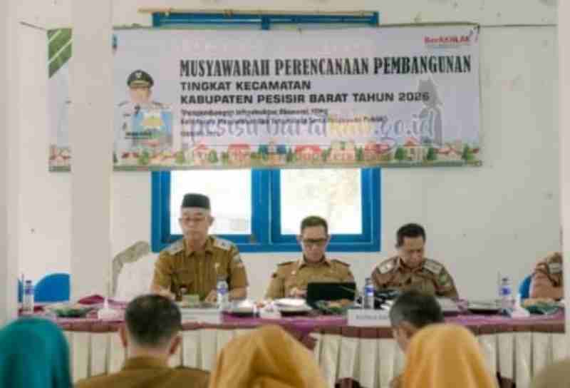 PESISIR BARAT – Pemerintah Kabupaten Pesisir Barat (Pemkab Pesibar) menggelar Musyawarah Perencanaan Pembangunan (Musrenbang) tingkat kecamatan Tahun 2026 yang dilaksanakan di Aula Kantor Kecamatan Karyapenggawa, Selasa 10 Februari 2026.