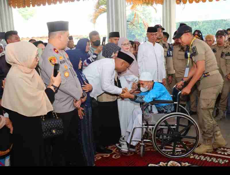 Rombongan yang terdiri dari 81 jemaah dan satu Petugas Haji Daerah (PHD) ini diberangkatkan menuju Asrama Haji Medan sebelum bertolak ke Arab Saudi melalui Bandara Internasional Kualanamu.