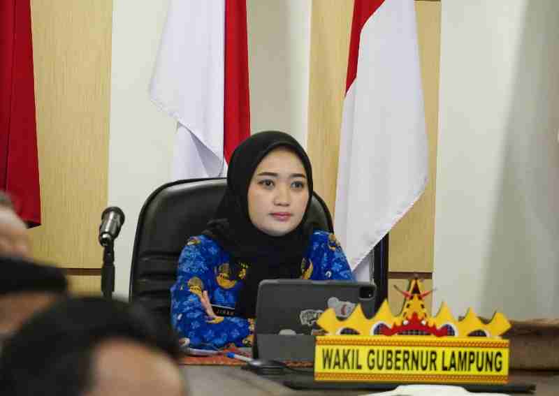Bandar Lampung – Wakil Gubernur Lampung, Jihan Nurlela mengikuti Rapat Koordinasi Penyelenggaraan Pemerintahan Daerah dan Penandatanganan Nota Kesepahaman Tentang Sinergi Tugas dan Fungsi di Bidang Agraria, Pertanahan, Pemerintahan Dalam Negeri, Kehutanan, Transmigrasi dan Informasi Geospasial, serta Pemeriksaan Kesehatan Gratis dan Implementasi Pembangunan 3 Juta Rumah secara virtual bertempat di Ruang Rapat Sakai Sambayan Kantor Gubernur, Senin (17/03/2025).