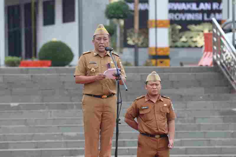 Bandar Lampung – Staf Ahli Gubernur Bidang Pemerintahan, Hukum dan Politik, Ganjar Jationo menjadi Pembina Apel Mingguan di Lingkungan Sekretariat Daerah Provinsi Lampung bertempat di Lapangan KORPRI, Senin (10/2/2025).