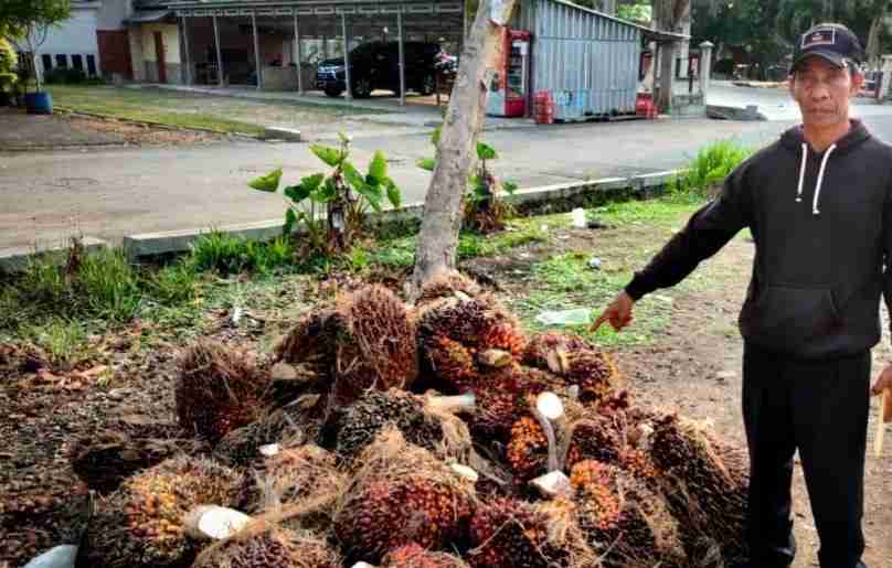 Pelaku, tertangkap tangan oleh petugas scurity saat sedang mencuri 55 tandan buat sawit di areal Afdeling I Blok 4 pada perkebunan kelapa sawit PTPN VII Padang Ratu, hari Jumat 10/11 kemaren lusa.