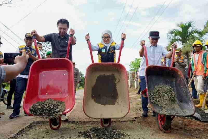 Pesawaran – Wakil Gubernur Lampung, Jihan Nurlela, melakukan groundbreaking pembangunan ruas jalan Gedongtataan-Kedondong sekaligus melaksanakan Program Hasil Terbaik Cepat (PTHC) di Kabupaten Pesawaran, Sabtu (26/4/2025).