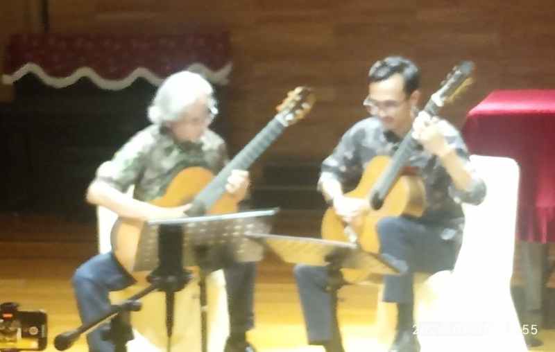 Semarang – Penampilan gitaris Rahmat Raharjo dan Mardian Bagus Prakoso di Konser “Echoes of Life” #5 sihir penonton yang hadir di Maxi Brain Academy Hall, Semarang, Kamis (18/07/2024). Dari awal hingga akhir pertunjukan audien terpesona dengan suguhan repertoar Duo Gitar R&B dari Yogyakarta. Sebelum menyajikan repertoarnya Rahmat Raharja gitaris cum dosen ISI Yogyakarta sebelum pentas menyampaikan dalam konser yang diinisiasi dan difasilitasi Maxi Brain Academy Duo Gitar akan 8 nomor komposisi yang akan dibagi dalam dua sesi.