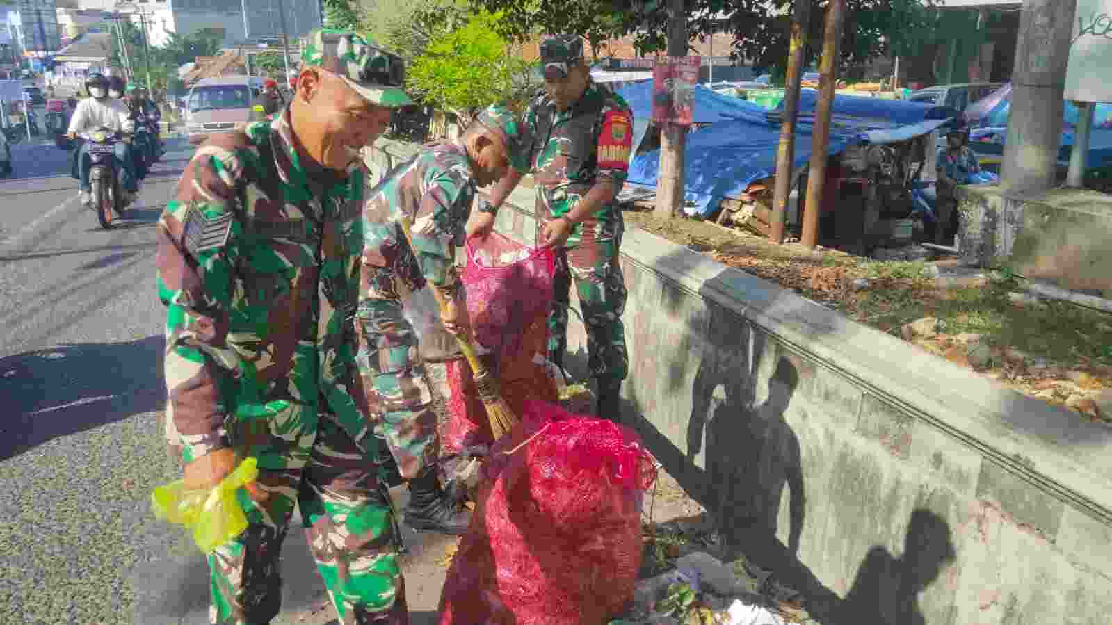 BANDAR LAMPUNG – Dalam rangka Hari Juang TNI Angkatan Darat ke-78 tahun 2023, Kodim 0410/Kita Bandar Lampung bersama personel gabungan TNI-POLRI dan Pemerintah daerah serta komponen masyarakat berkolaborasi melakukan pembersihan sampah di Pasar Tamin, Kota Bandar Lampung, Kamis (14/12)
