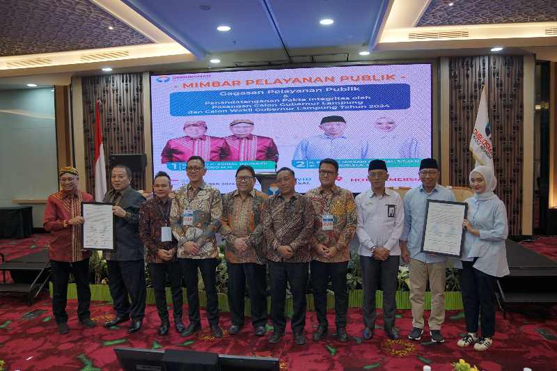Pada kesempatan tersebut, para calon gubernur dan wakil gubernur turut menandatangani Pakta Integritas “Siap Melayani dan Anti Maladministrasi” sebagai bentuk komitmen untuk menghadirkan pelayanan publik yang lebih baik di Provinsi Lampung apabila terpilih.
