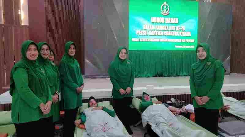 Donor darah diikuti segenap anggota Persit Kartika Chandra Kirana Koorcab Rem 071 baik ranting Makorem 071 maupun anak ranting titipan Balak Aju Kodam IV/Diponegoro jajaran Korem 071/Wijayakusuma, dan prajurit serta PNS Makorem 071/Wijayakusuma.