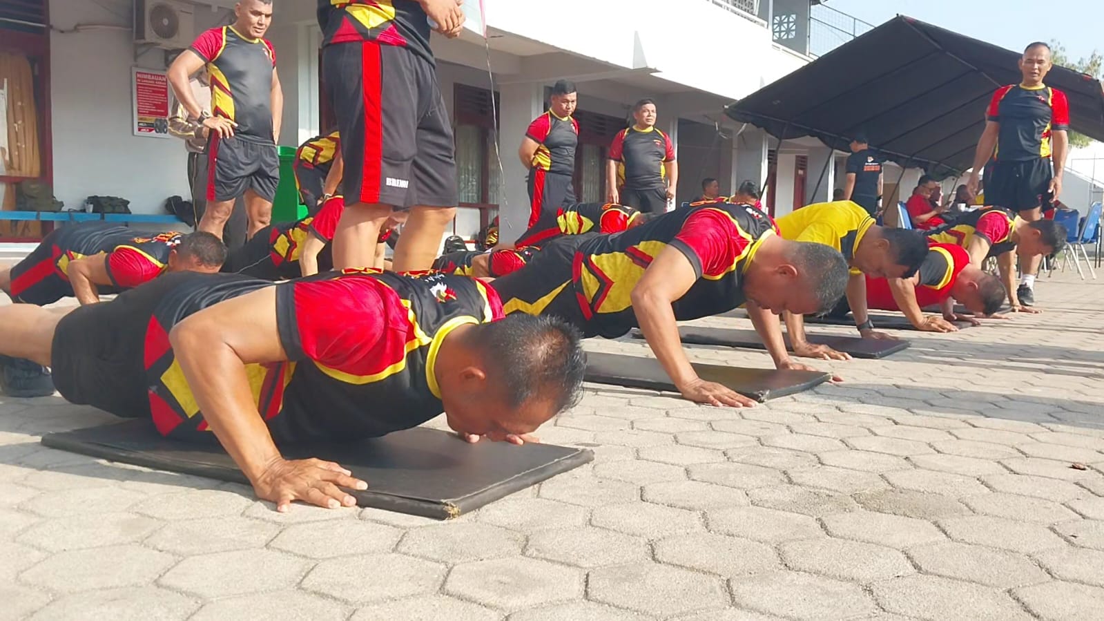Sebelum Memulai Kegiatan Kesamaptaan Jasmani ini personil melaksanakan Pemeriksaan kesehatan terlebih dahulu di awali dengan pengecekan Tensi kepada seluruh personel kemudian dilanjutkan dengan pemeriksaan kesehatan. Adapun pelaksanaan kegiatan Tes Kesamapataan Jasmani antara lain lari, push up, sit up, pull up, shuttle run dan Beladiri.(*)