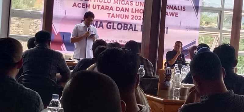 Sumaterapost.co | Aceh Utara – PT. Pema Global Energi bersama Badan Pengelola Migas Aceh (BPMA) menggelar kegiatan Edukasi hulu migas bagi ratusan jurnalis yang bertugas di wilayah Kabupaten Aceh Utara dan Kota Lhokseumawe, acara berlangsung di sebuah Cafe Gunung Salak kecamatan Nisam daerah setempat, Kamis (5/9/2024) pagi.