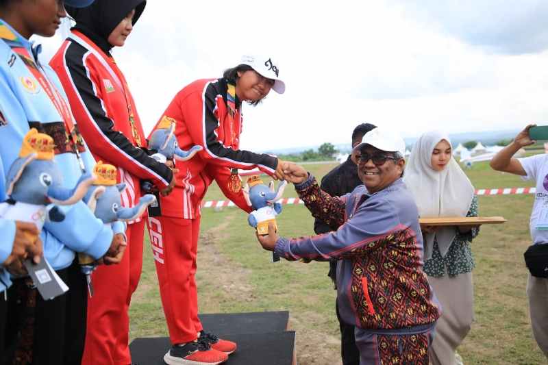 Sumaterapost.co | Aceh Utara – Penjabat Bupati Aceh Utara Dr Mahyuzar, MSi resmi melakukan pengalungan medali untuk atlet Aceh peraih medali emas pada mata lomba duration flight dual seater beregu putri cabor terbang layang Pekan Olahraga Nasional (PON) XXI Aceh – Sumut tahun 2024.