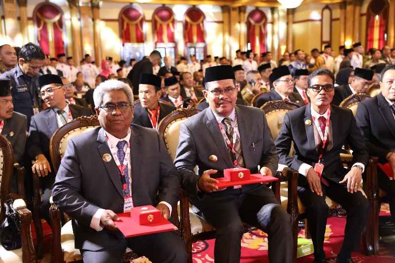 Pada kesempatan tersebut terlihat Pj Bupati Aceh Utara duduk berbaris dengan Pj Walikota Lhokseumawe, A. Hanan dan Pj Walikota Langsa Syaridin SPd.