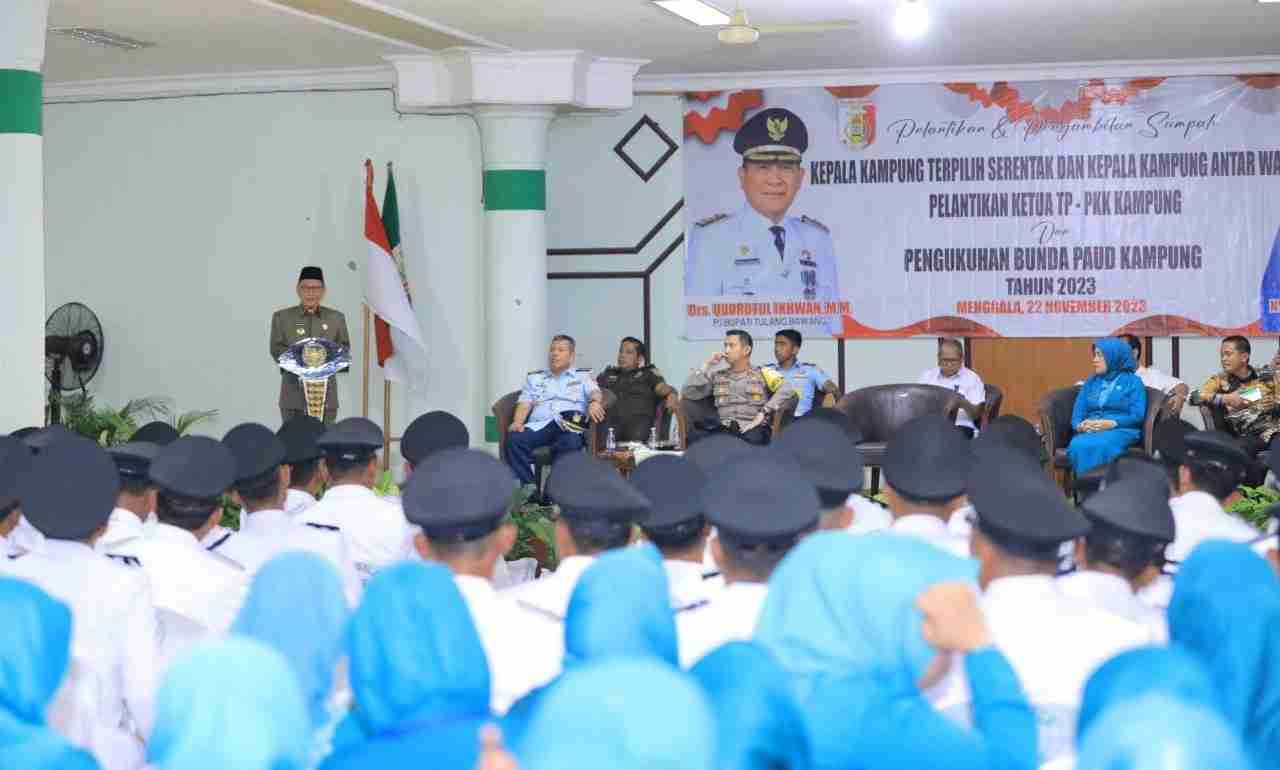 Dalam kesempatan ini Pj. Bupati Tulang bawang melantik 67 Kepala Kampung dan 2 Kepala Kampung Pemilihan Antar Waktu (PAW). Penjabat Bupati Tulang Bawang bapak Drs Qudratul Ikhwan MM berpesan untuk stop tebar pesona, fokus bekerja dan melakukan pelayanan terbaik serta menjalankan amanah sebaik-baiknya.