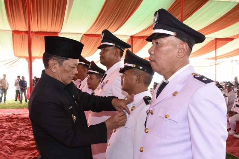 Pengukuhan dan Penyerahan Surat Keputusan (SK) perpanjangan masa jabatan Kepalo Tiyuh dilaksanakan di Lapangan Pulung Kencana, Kec. Tulang Bawang Tengah. Kamis (20/06/2024).