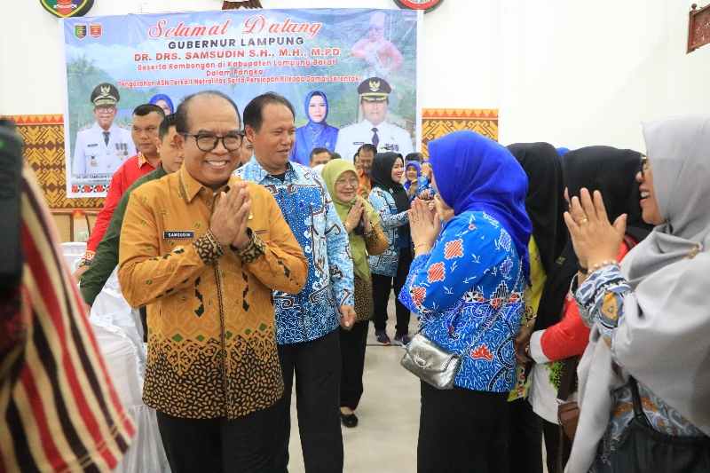 Lampung Barat – Pj. Gubernur Lampung Samsudin didampingi Pj. Ketua TP. PKK Provinsi Lampung Maidawati Retnoningsih dan sejumlah Pejabat Tinggi Pratama dilingkungan Pemerintah Provinsi Lampung melakukan kunjungan kerja di Kabupaten Lampung Barat, Jum’at (30/8/2024).